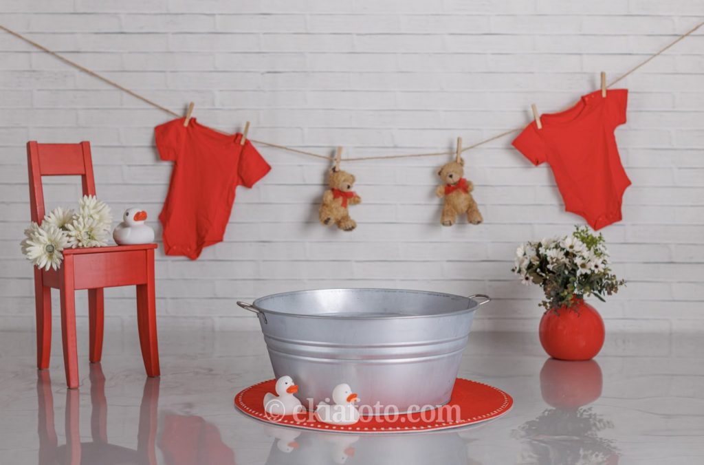 1 escenario personalizado a elegir con atrezo de cumpleaños o baño