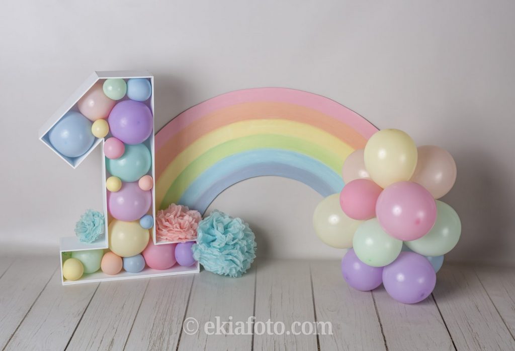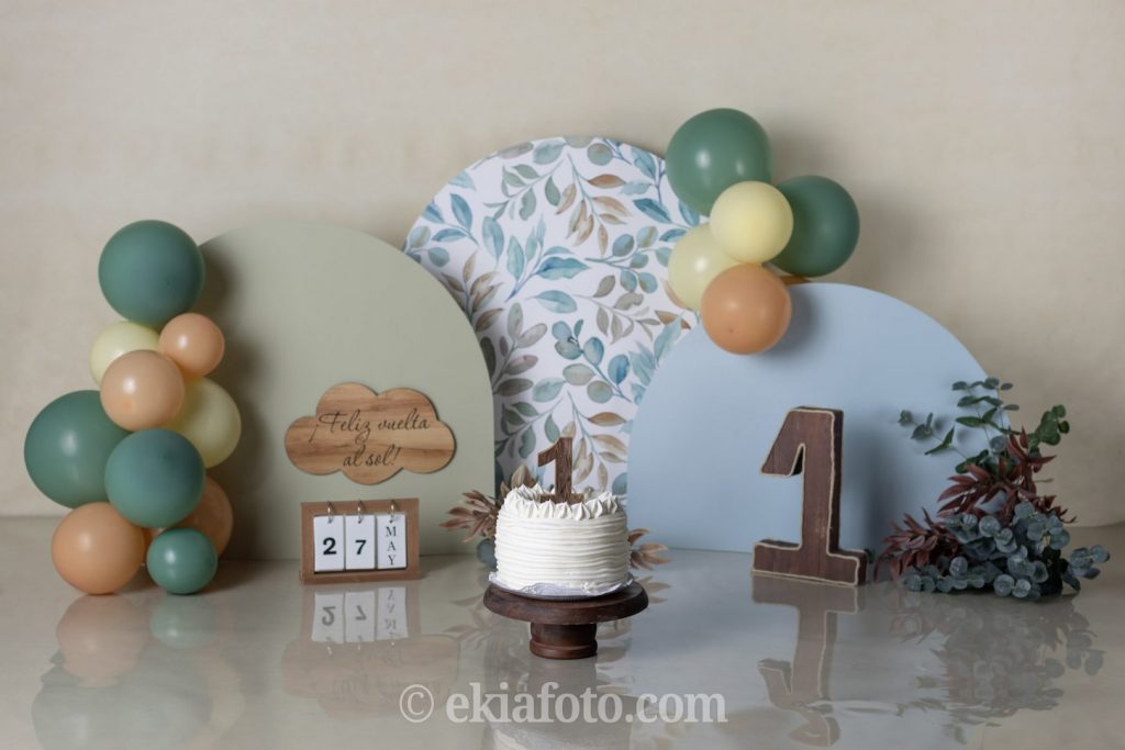Las sesiones de cumpleaños en Ekia se realizan con escenario y vestuario personalizados, preparados específicamente para cada bebé.